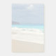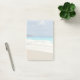 Fästiga anteckningar med ett vackert foto med ett turkosblått hav och en sandstrand med vågar av skummande surfa. Ett halvgenomskinligt överlägg skapade ett mjukt utfall så att du kan skriva över överkanten.