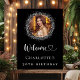 Välkommen poster för en glamorös 30:e (eller någon ålder) födelsedagsfest. En klassisk svart bakgrund som dekoreras med ett faux silver glitter-foto ram. Anpassa och lägg till ett foto och namn. Välkomna med ett hjärta.