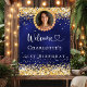 Välkommen poster för en giftig och glamorös 21:a (eller någon ålder) födelsedagsfest. En ojämnt blå bakgrund i färgaden som dekoreras med faux guld konetti. Anpassa och lägg till namn och ålder 21 år. Välkomna med ett hjärta. Lägg till fotot i faux golden diamant ram.