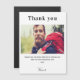 Vit bakgrund. Stora bokstäver med dekortecken och text: Tack. Anpassa och lägg till foto, tackkort och namn.