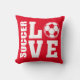 Röda SOCCER KÄRLEK-fotbollsspelare. Fotspelarna kommer att göra det här till en fotbollskudde i kärlek! Den här idrottskudden har ett Kärlek-tema med ord SOCCER och KÄRLEK i fetstilt vitt brev. En fotboll tjänar för brev O-ge och denna utformning är ett verkligt fotbollstema. På baksidan av den här kudden är samma konfektyrdesign i Kärlek, men utskriven som en fantastisk utskrift över mönstrad utskrift. Den här kudden ser underbar ut på vilken stol som helst och kommer att visa alla att du har ett glödande kärlek för fotboll. Mer roligt fotbolls-teman och varor finns i STAND UP AND CHEER-butiken!