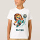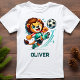 Den här roligten och den kraftfulla t-shirt-personligen har en glatt lejon spelfotboll. Den lejona idrotten är en lekfull fotbollstjersey och kort i livfulla och gröntar.