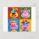 Four Animal Faces Vykort