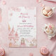 Set the stage for a magical celebration with this stunning 5x7 invitation card, perfectly designed for a 4th birthday milestone. The card features a beautiful watercolor fairy tale castle in soft pink tones, accompanied by a whimsical unicorn, a charming princess, and an elegant golden carriage. Surrounded by soft pink clouds and delicate butterflies, this design captures the true essence of a royal enchanted kingdom.