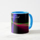 This geometric coffee mug features a trendy colorful four-way wave pattern. This product offers custom text editing and pairs well with other in-kind series design products. Additional mug color options are available.