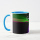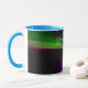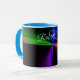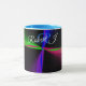 This geometric coffee mug features a custom colorful four-way wave theme modern design. Text customization and additional mug colors features are available to personalize to your preference.