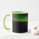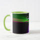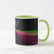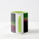 This geometric coffee mug features a custom colorful four-way wave theme modern design. Text customization and additional mug colors features are available.