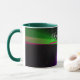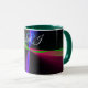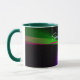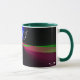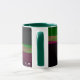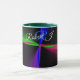 This geometric coffee mug features a custom colorful four-way wave theme modern design. Text customization and additional mug colors features are available.