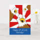 Födelsedagen på fourthen av det Juli hälsningkortet presenterar att använda för tecknadillustration som är rött, metar storleksanpassar vit- och blåttinslag av amerikanska flaggan och tre örnar som dras på olikt, och.
