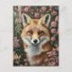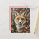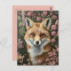 Ett vackert detaljerat foxgazes in i kameran, omgivet av vibranta rosa vår blommigtar, skapande en serene och förtjusande skogsmiljö.