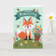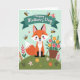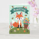 Designed with a sweet digital illustration, the card features a stylized fox-like creature with a warm russet coat, bright white accents, and a soft pink blush on its cheeks, sitting calmly on a grassy hill as if waiting for a loved one ❤️. Above it, a teal banner stretches across the top with a Mother’s Day message written in white lettering, centered and easy to read. The background is a pale aqua wash that keeps the scene light and airy, like a quiet spring morning. Near the upper area, small striped bees with see-through wings hover close by, and a single pink butterfly drifts nearby, adding gentle motion. Tiny white and red hearts float around the character, hinting at affection and closeness without needing extra words 🌼. On the right side, a terracotta flowerpot sits on the grass, overflowing with simple coral and orange blooms and leafy green stems. More small flowers and bits of foliage are scattered across the foreground, with the hill shaded in soft greens and dotted with little blossoms. The teal banner curves slightly above the character, while the pot and flowers balance the scene on the right.