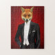 Fox i Evening Kostym, Porträtt med Fab Funky. Har en väl klädd räv mot en plusröd bakgrund. | 190731D