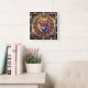 Fox Intricate Mandala Design Vibrant Cosmic Färg Fyrkantig Klocka