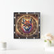 Konstgjord klocka med en räv omgiven av en detaljerad mandalabildsdesign, som blandar inslag i vardagen och kosmisk. Det pulserande färg och elegant mönster skapar en unik och slående visning biet.