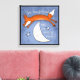 En söt, viskartad räv kan ses ta sig över den sovande halvan av måne. På bildtexten står det: "räven hoppade över sömnig måne!" Söt blå himmel med några ljusa stjärnor. Detta kommer att vara ett underbart tillägg till en ungdoms rum. Detta kommer att vara perfekt för de skogsskövlade spelrummen, sovrummen och förskolerummen. Den ursprungliga designen av Christie Black av Creations från hjärtat.