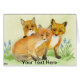 Tre frågande rävkits finns i den här lilla vattenfärgsmålningen. Anpassa genom att själv ändra texten till kostym!