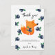 Könsneutrala inbjudningar till babydusch. Ett exempel på en vattenfärgsräv med blåbär i tassar och många blåbär i mönster. Matchande objekt är tillgängliga.