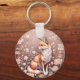 Fox med Dreamy Rosa Blommigt Nyckelring