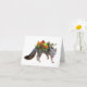 En ekorre rider en räv som bär på skördefestet på ryggen. Skicka det här unika vildens djurkort för Thanksgiving eller för en inbjudan till middagsfest.