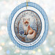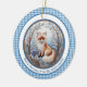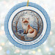 Den här charmerande prydnadsföreställningen visar en orange och vit räv mot en blå och vit vinsterskog. Den är kantad i brunt och blått, med personlig hälsning och en färsk blå gingham-bakgrund. Se till att du skriver önskad text i rutan Anpassa. Det unika färg och charmerande stil i denna rävdekoration kommer att ge en unik beröring till Julgran eller hemdekanten.