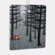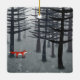 En ensam vild rödräv står under gräs träd i en mörk skog. En landskapsmålning för djur, natur och vilda djur och älskare.