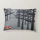 En rödräv av vild finns bland träd i en mörk skog. En landskapsmålning för djur, natur och vilda djur och älskare.