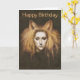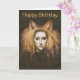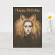 Det här födelsedagskortet är illustrerat med en vacker foxbelagd flicka med lamt hår.