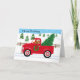 Fox Red Labrador Red Lastbil jul-kort för Labrador-ägare. Festiv bild av Fox Red Labrador som kör sin vintage Red Lastbil på vägen till hemmet med Julgran på lastbil sängen. Cute Labrador Tecknad Art skapat av Naomi Ochiai.