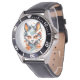 Omvandla den här infångande t-shirt-designen till en bedövande klocka ansikte som firar natur och konst. Den vibrerande rävbilden, med den piercing orangen ögon och päls blandningsblått, orange och vitt, skapar en oförglömlig visuell påverkan. Omgivande höst löv och dynamiskt orange stänk lägger till ett säsong-tecken i utformningen. Denna klocka kommer inte bara att vara ett funktionellt tillbehör, utan också ett biet av den rika konsten i miniatyr.