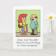 Önska din make en glad årsdag med det här fräcka kortet med bilden av en man och hans fru som håller massor av shoppingpåsar. Hustrun ser glad ut medan mannen ser stel ut. Den humoristiska texten på framsidan lyder "Kära, var inte dum. Det finns ingen sådan sak som "färdig shopping"! Texten inuti lyder "Du borde ha vetat efter alla dessa år. Glad årsdag!" Ett skämt om dina egna shoppingvanor.