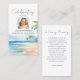 Ett vackert bönekort till ge till familj och vänner som begravningskapé. Utformningen innehåller ett foto på framsidan som markerats med en tropisk strand med vattenfärg gräns. Lägg till namn, anpassningsbar, dikt eller skript till baksidan om du vill skapa en verkligt unik hågkomst.