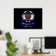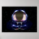 En blå och lila fraktalbild som liknar en astronauthjälm och axlar på en stjärnfältsbakgrund.