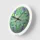Fractal konsvägg klocka. Psykedelisk, svart ljuskänslig, cyberpunk. Trippy rave-klockgåva!
