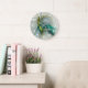 Fractal Evolution, Golden Turquoise Abstract Art Stor Klocka