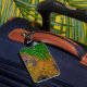 Den digitala kompositionen som mäts utforskar den oändliga komplexiteten hos de fraktioner som bildas genom vibrerande övertoningar och flytande struktur. Intrikera spiral mönster blommar över ett modigt landskap av grönt, guld och krimson, vilket framkallar både naturlig tillväxt och kosmisk bildning. Bilden fångar upp en dynamisk spänning mellan matematisk ordning och organiskt kaos, där varje rekursiv detalj leder djupare in i det okända.
