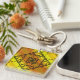 Tre stilar av handdragna fraactaler, inklusive siepinski-trianglar och Apolloniska korkettkonstruktioner, utgör lagrar i denna geometriska mandala, överlagrad på en ljusstark gult och orange.