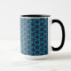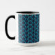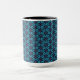 Ett merifierande, intrikat mönster som består av ljusblå, blomma eller webben-liknande strukturer som är placerade i en symmetrisk, upprepande geometrisk form. De sammanlänkade linjer och noderna skapar ett nästan fraktalliknande utseende, som liknar en fusion av nykretsar och ömtåliga ramar. Bakgrunden till mörken förstärker ljusstyrkan, skapar att konstruktionen ser ut som om den pulserar med en elektrisk glöd.
