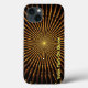 En svart och gult, roterad, stjärnliknande fraktalbild. Lägg till din egen text.