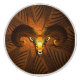 Många fractal bilder tillsammans bildar ett färgat ramhuvud på en bakgrund som ser ut som karvat trä.