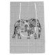Digitalgrafik av en elefant med blandad mönster mot en arabesque tiled bakgrund - Fractal swirl mönster i svartvitt och nyanser av grått / grått mot silver grått-bakgrund