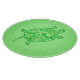 Digitalgrafik i blandat medium av en sköldpadda i ett frätande pinhjul mönster mot en arabesque-bakgrund i mitten - skuggor av grönt som sträcker sig från pastellkalk till djup emerald