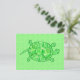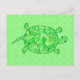 Digitalgrafik i blandat medium av en sköldpadda i ett frätande pinhjul mönster mot en arabesque-bakgrund i mitten - skuggor av grönt som sträcker sig från pastellkalk till djup emerald