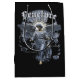 At the heart of the design, a six-winged angel stands defiant, cloaked in grace and still, their halo glowing like a resistance in the dark. Behind them, a once-sacred stained glass window bursts apart, its fragments frozen mid-flight, caught in the moment where belief breaks and truth bleeds through. Above the image, the stark word “Fractures” looms like a whispered curse. Two cryptic Latin phrases echo behind the angel, "Non Serviam" (I will not serve) and "Fatum ex Tenebris" (Fate from Darkness).