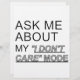 Fråga mig om mitt "jag bryr mig inte"-läge. Lustigt text.