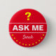 Knappar: Fråga mig - ställa dina frågor? Röd knapp med personlig/personens namn. Hjälp, knapp för informationskläder.