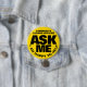 Fråga mig om jag är lycklig för att hjälpa till med att slogera kundens kundkontakt eller hjälpa till att anpassa sig med din egen jobbtitel eller ditt företag namn. Låt dina kunder eller allmänheten veta att du är tillgänglig för att hjälpa till med denna briljanta gult- och svarta knapp. Bakgrunden till färg kan ändras vid behov. Designad av www.mylittleeden.com