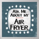 "Fråga mig om min Luft Fryer" är en roligt med en vit accentform omgiven av vita, vita, vita, vita, vita texturerade punkter.