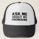 Fråga mig om min Truckerkeps för pride av gender i Pronouns svartvita, moderna typografi. Finns i många färg.