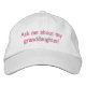 Coolans gåva till den stolta farfar eller mormor med "Fråga mig om min barndotter!" på en broderad hatt. Underbara Fars dag och Mors dag! Enkel att anpassa texten.