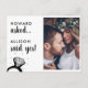 Frågade Sade Ja Namn Engagerad Ring Foto Förlovni Meddelande Vykort
